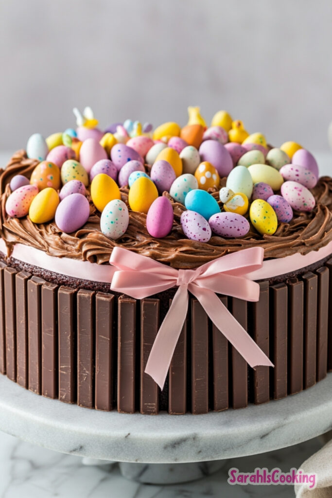Keywords: chocolate easter cake, mini egg cake, kitkat cake, easy easter dessert, chocolate buttercream cake, easter baking, celebration cake