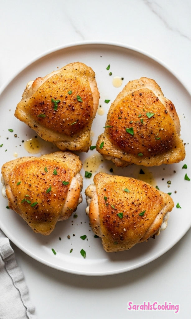 Keywords: baked chicken thighs, crispy chicken thighs, easy chicken dinner, oven baked chicken, bone-in chicken thighs
