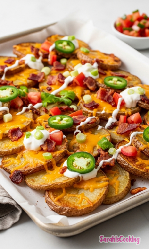 Most loaded potato recipes fail because the potatoes turn soft or soggy before you finish eating. Slicing Russets into quarter-inch rounds and roasting them on both sides creates a sturdy base with crisp edges and a tender interior.