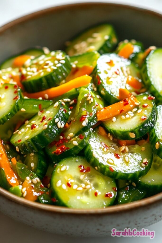 I appreciate recipes like this because they rely on precision rather than complexity. The right ratio of salt, vinegar, chili, and sesame oil makes the difference between a watery cucumber bowl and a bright, punchy salad that complements an entire meal.