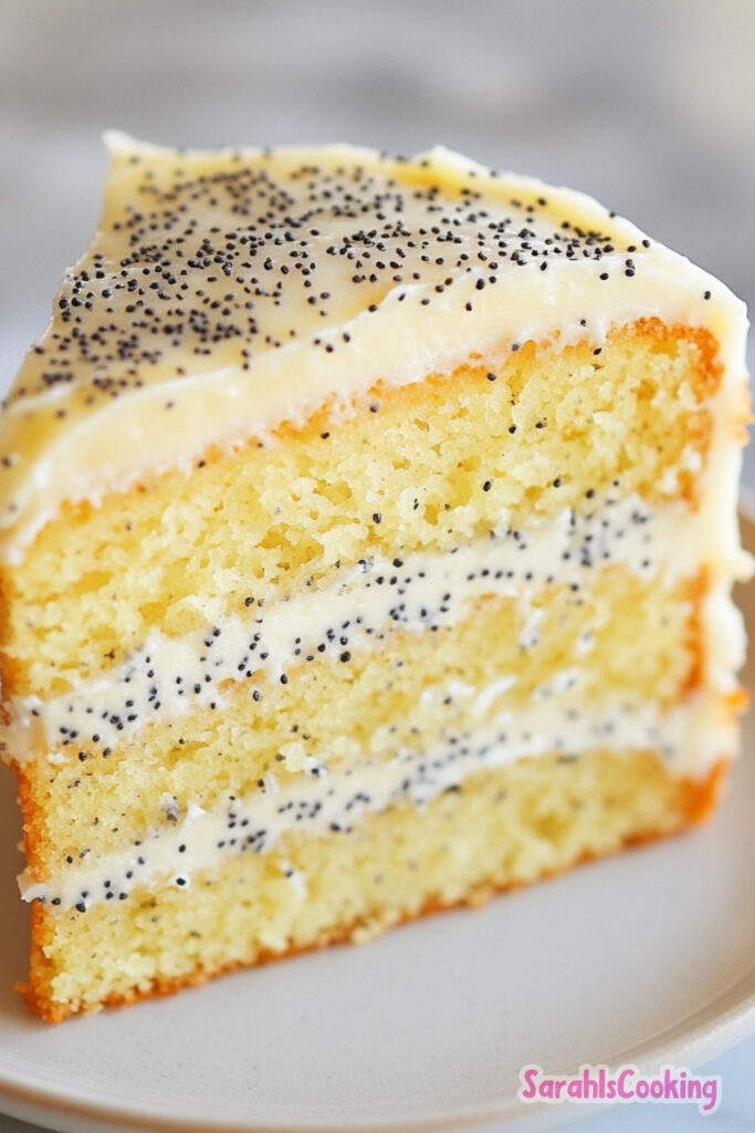 Poppy seeds introduce a subtle textural contrast that keeps the crumb interesting. Lemon curd adds brightness between layers, preventing the cake from tasting flat.