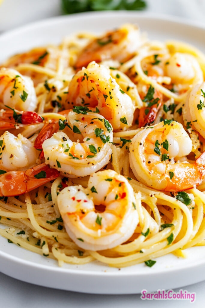 The method here is intentional. Every step builds toward a silky, garlic-forward sauce that clings to the noodles while keeping the shrimp front and center without overcooking them.