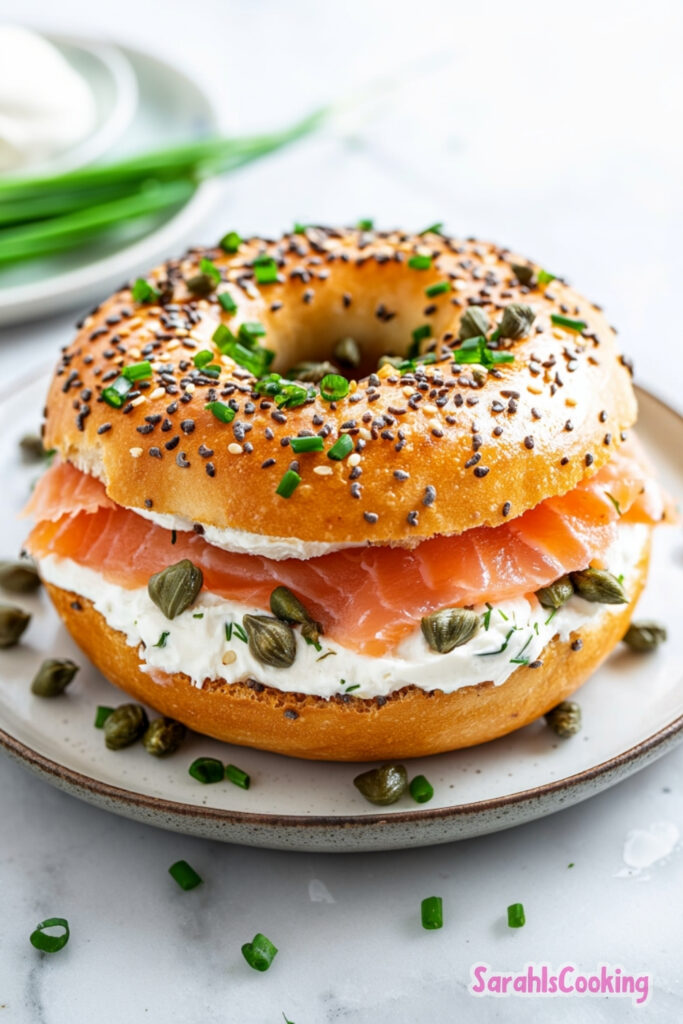 This recipe relies on a simple but precise ratio. The bagel provides structure, the cream cheese adds fat and moisture, and the salmon delivers both protein and richness.