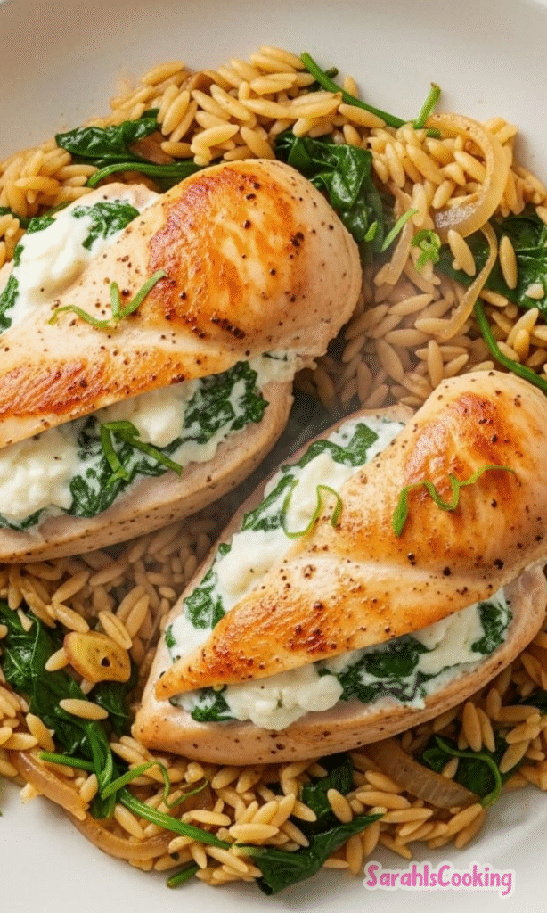 How to Make Spinach and Goat Cheese Stuffed Chicken with Orzo